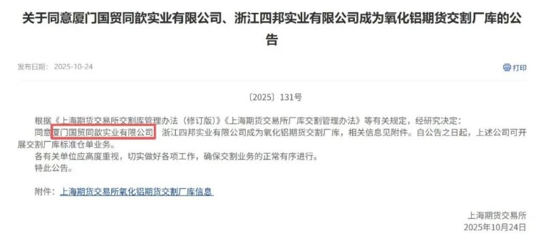 國貿股份獲批上期所氧化鋁交割廠(chǎng)庫資質(zhì)。